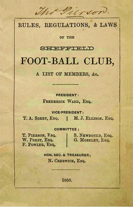 24 октября 1857 года был основан первый в мире футбольный клуб "Шеффилд" на базе Крикетного клуба. Были популярными матчи между "женатыми" и "холостыми". Изначально в каждой отдельной команде был свой устав - где-то участвовали 10 человек, а где-то 15, у многих была разрешена игра руками, толчки и подсечки и т.д. Через 6 лет была создана ассоциация футболистов и соответственно основные правила этой игры.