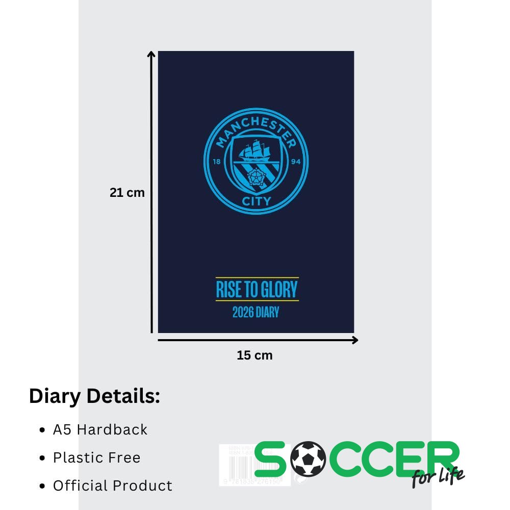 ОписаниеДневник Манчестер Сити Manchester City FC 2026 в синем твердом переплете.С голубой гербом Манчестер Сити и текстом "Rise To Glory".С эластичной застежкой и удобной закладкой.Официальный лицензированный товарРазмер 22 см x 15 см.Вес изделия 330 гХарактеристики