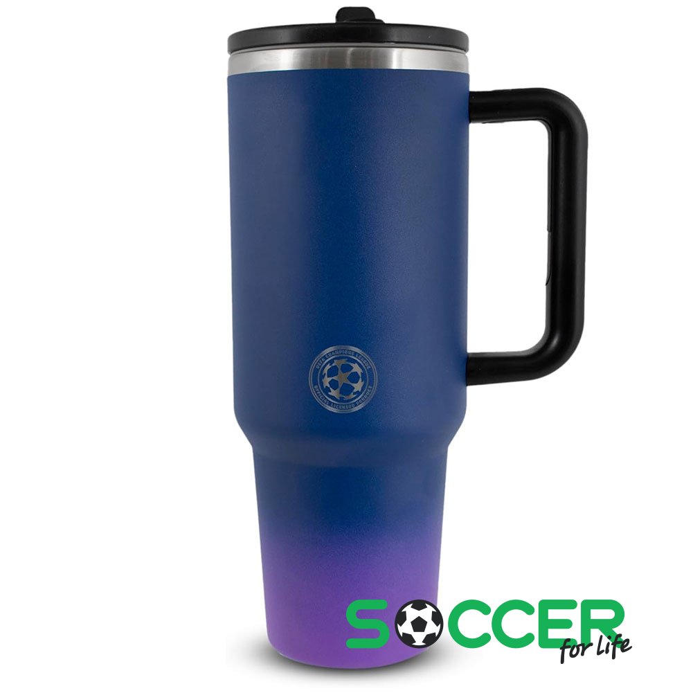 ОписаниеСиняя термочашка объемом 40 унций (1227 мл) с гербом Лиги чемпионов УЕФА.