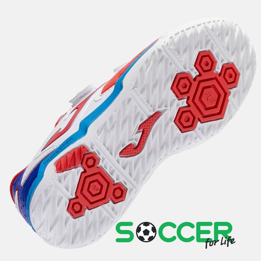 ОписаниеДетские футзалки Joma Cancha 2606 Jr IN CAJS2606INV: Энергия и выносливость на каждой тренировкеЭта экономичная и универсальная модель создана специально для юных спортсменов, делающих свои первые шаги в футзале.Благодаря продуманной конструкции обувь помогает ребенку максимально высвободить энергию на поле, обеспечивая комфорт и безопасность.Верх высококачественной синтетики гарантирует долговечность даже при интенсивном использовании и обеспечивает четкое ощущение мяча.Технология перфорации VTS позволяет стопе дышать, эффективно отводя влагу во время активной игры.Специальная резиновая накладка PROTECTION предохраняет пальцы от ударов и значительно продлевает срок службы обуви.Характеристики