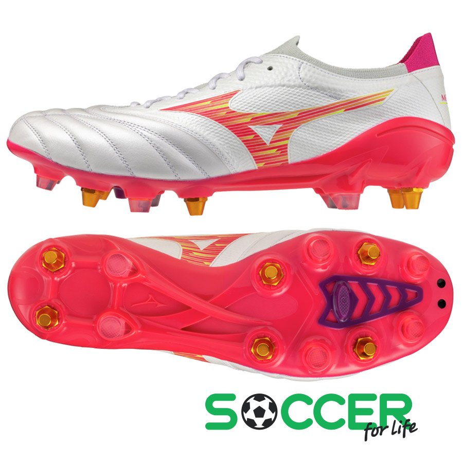 ОписаниеБутсы Mizuno Morelia Neo IV B Elite разработаны для обеспечения премиального комфорта и ощущения босиком благодаря своему инновационному дизайну. Изготовленные из высококачественной кожи кенгуру, они обеспечивают естественное прикосновение к мячу и идеальную посадку. Переработанная структура люверсов минимизирует складки во время гибки и лучше адаптируется к стопе, а замшевая стелька обеспечивает улучшенное сцепление. Верхняя часть средней части стопы изготовлена из BareFoot MESH NEO, более мягкого материала для еще более выраженного ощущения босиком. Эти гибридные бутсы, идеально подходят для игроков в регби и футбол, изготовлены во Вьетнаме и доступны в белом и розовом цветах.Характеристики