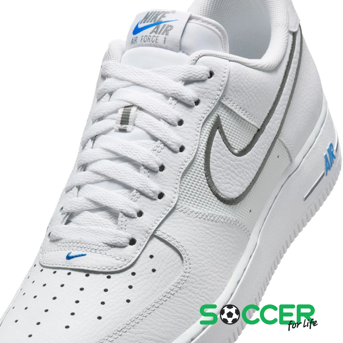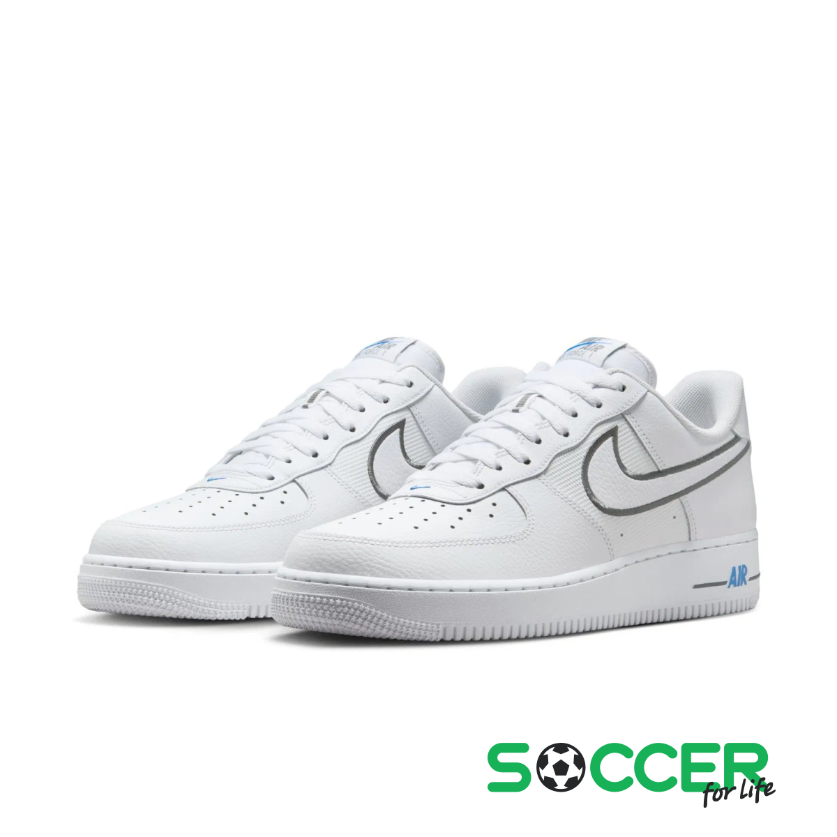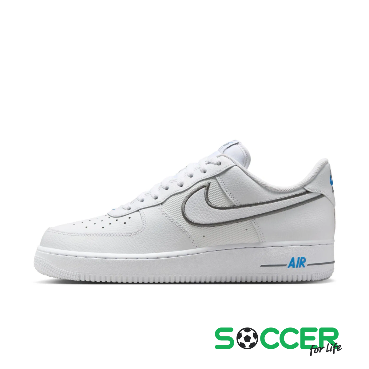 ОписаниеNike Air Force 1'07: Классика с футуристическим акцентомЛегендарные Air Force 1 – это база, которая не подвластна времени. Однако модель в расцветке "Light Photo Blue/Cool Grey" придает привычному силуэту нотки интриги и современного стиля.Традиционная белая кожа здесь гармонично сочетается с инновационными вставками из баллистического материала на боковых панелях, что делает кроссовки зрительно интереснее и практичнее.Особое внимание привлекает пятка: спускающаяся к подошве светоотражающая ткань придает модели технологического вида.Яркие голубые элементы на логотипах и серый кант Swoosh создают динамический образ, который выделит вас из толпы, сохраняя при этом универсальность культовых AF1.Характеристики