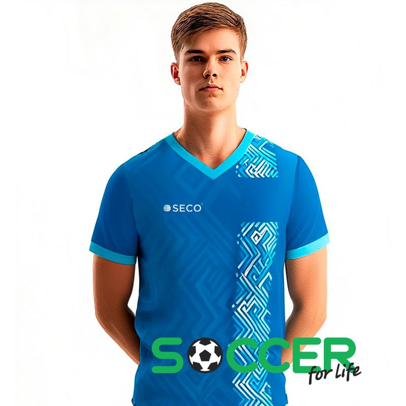 Модель SECO Sefa имеет яркий запоминающийся дизайн с узором. Полоса спереди слева в области сердца имеет разрыв для гармоничного размещения логотипа команды. В производстве изделий SECO используется оборудование нового поколения. Модель SECO Sefa имеет удобную анатомическую посадку, легкую приятную на ощупь ткань с сетчатой структурой и высокое качество обработки всех узлов изделия. Ткань обеспечивает комфортную температуру тела при интенсивных нагрузках на открытом воздухе и в закрытом помещении. Специальные соединительные нити позволяют сделать шов прочным и эластичным, что делает его устойчивым к разрывам. Изделия проектируются с учётом антропологических отличий атлетической фигуры и ее размерных признаков, что даёт отличную посадку изделия по фигуре, комфорт в эксплуатации. Узор нанесён методом сублимации из экологичных материалов с гарантией 5 лет. Технология SECO позволяет переносить цвет на ткань сочными и яркими цветами. Ворот V-образный. Модель - унисекс. Состав - 100% вентилируемый полиэстер. SECO Sefa произведена в Европе. Продукт сертифицирован. Футбольная форма SECO - это Твой путь к победе!