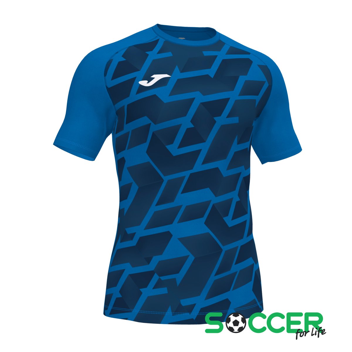 Спереди футболка дополнена геометричными узорами и логотипом Joma в области груди.