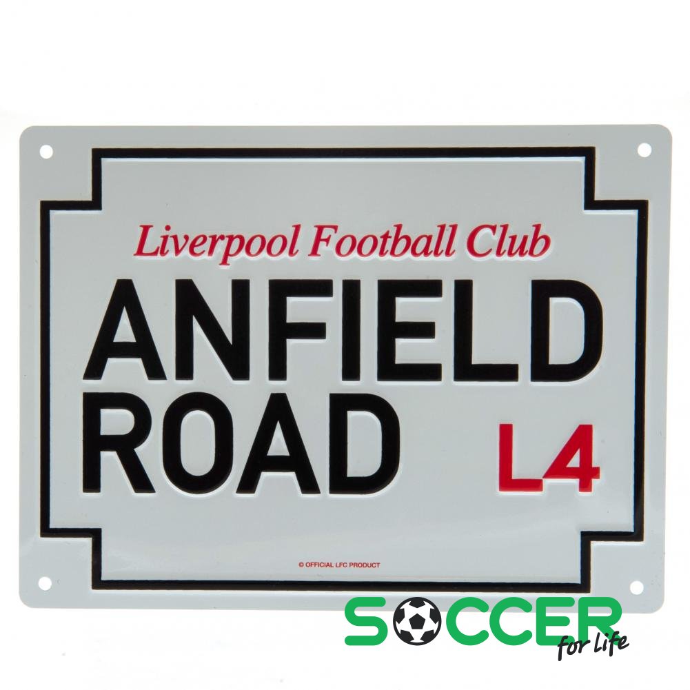 Со знаменитым знаком «Энфилд Роуд» L4 и надписью «Ливерпульский футбольный клуб»