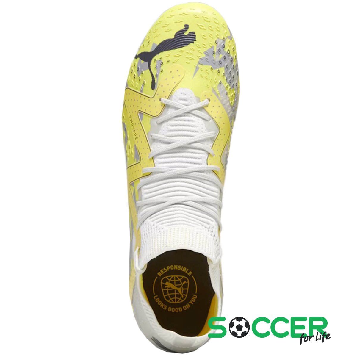 Полупрофессиональные футбольные бутсы Puma Future с усовершенствованной подошвой — практичное решение для клубных матчей, проводимых на натуральной траве и искусственном покрытии.