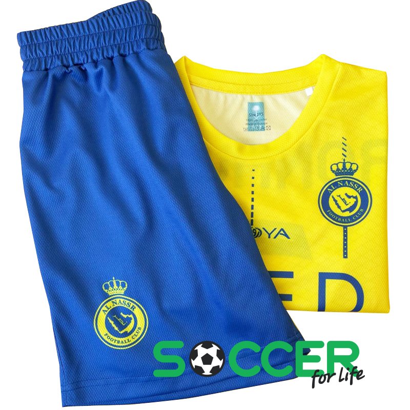 ОписФутбольна форма Аль-Наср Роналдо (Al Nassr Ronaldo) ігрова/повсякденна. У комплект входить: футболка+шорти. Підходить для частих занять спортом і для звичайного щоденного носіння. Має анатомічну посадку, легку тканину із сітчастою структурою. Тканина забезпечує комфортну температуру тіла за інтенсивних навантажень. Матеріал стійкий до багаторазового прання. Колір яскравий, соковитий. Комір футболки: O. Модель - унісекс. Склад - 100% вентильований поліестер.
