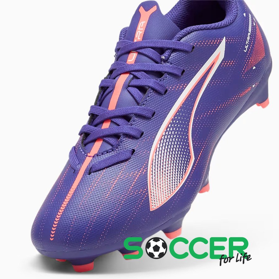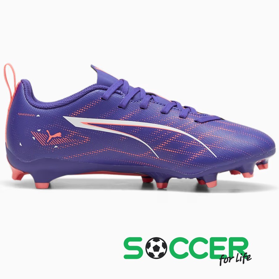ОписДитячі бутси Puma Ultra додадуть енергії та швидкості під час футбольних матчів. Ці спортивні бутси із флагманської колекції Puma Formula Pack. Верх із синтетичного матеріалу, легкий, з тисненими елементами та принтом. Класичне шнурівка. Підошва Speedsystem поєднує в собі високоефективні волокна та інноваційну систему шипів для максимальної віддачі енергії та покращеного прискорення. Шипи FastTrax і більш закруглені шипи з боків забезпечують відмінне зчеплення як з натуральним, так і штучним газоном.Характеристики