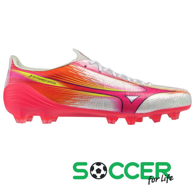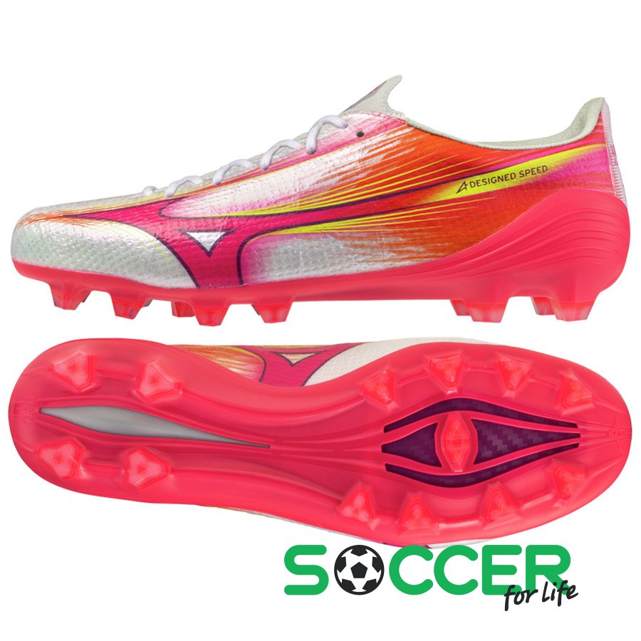ОписAlpha III забезпечують справжню швидкість завдяки ідеальній посадці, завдяки колодці Engineered Fit Last NEO, де кожна деталь розроблена для підвищення прискорення, зберігаючи при цьому природні та впевнені відчуття Mizuno. Верх із високоякісного трикотажу із сіткою ZEROGLIDE α Mesh у передній частині стопи забезпечує точний контроль м'яча та відчуття "другої шкіри". Натхненна серією Morelia, базова конфігурація шипів на підошві з трикутними шипами максимізує вертикальне прискорення та швидкі, контрольовані рухи. Mizuno ENERZY у п'яті забезпечує чудову амортизацію та плавний, чуйний удар. Оснащені класичною адаптивною системою шнурівки.Характеристики