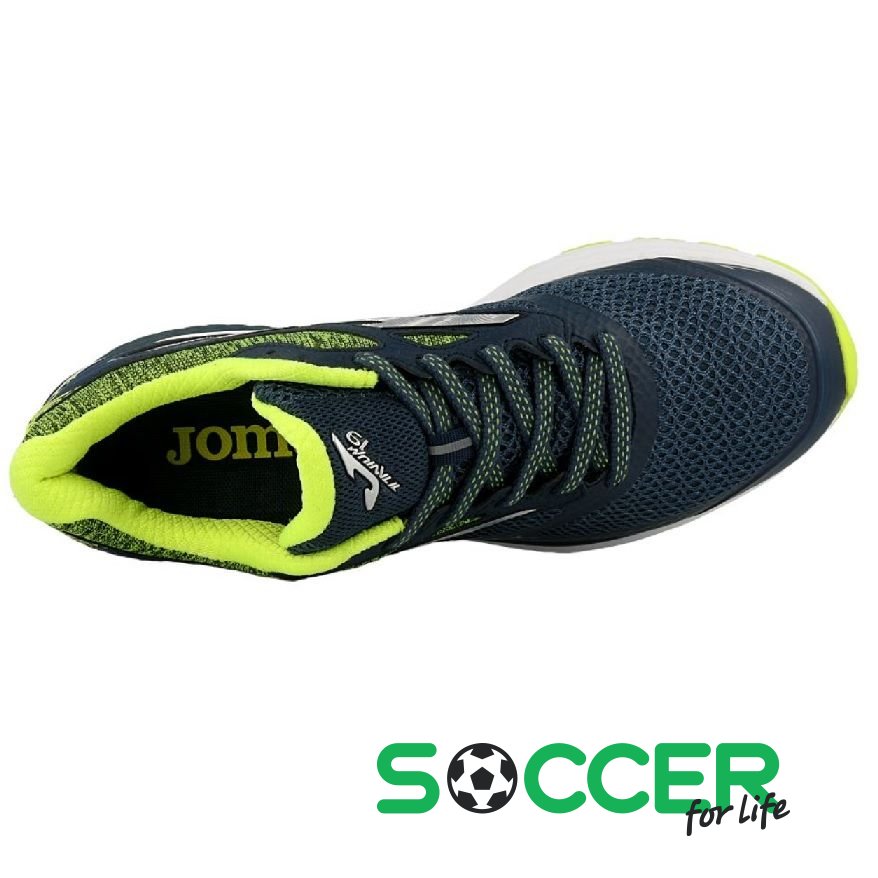 Верхня частина виконана за безшовною технологією з нейлону, мікрофібри на основі поліуретану та бічних безшовних деталей з термопластичного поліуретану для зменшення ваги виробу. Підошва виготовлена за фірмовою технологією 360 °, що забезпечує природний розподіл ваги при зіткненні з поверхнею. У кросівках також застосована безшовна технологія Joma SportTech каучуку, що впорскується, яка виключає необхідність використання жорстких матеріалів, а також робить виріб більш еластичним в зонах вигину і легко підганяється до стопи. Система циркуляції повітря VTS забезпечує повітропроникність кросівок і запобігає перепадам температури для стопи. Устілки виготовлені з пресованого антибактеріального матеріалу ЕВА+, що легко підганяється до форми стопи. Верхня частина підошви виконана з матеріалу ЕВА+ на основі натуральних волокон і пришита до підошви за технологією Glove Sysytem без виступаючих швів для запобігання тертю стопи. Завдяки цьому, забезпечується почуття комфорту та зменшена вага кросівок. Матеріал ЕВА+ сприяє амортизації та поглинанню ударів при зіткненні з поверхнею. Завдяки системі Flexo відбувається природне перенесення ваги від п'яти до носка при кожному кроці. Крім того, використано технологію Pulsor для поглинання ударів при зіткненні з поверхнею та збільшення імпульсу при поштовхах. Підошва виготовлена за технологією Durability, дуже довговічна завдяки міцному каучуку, стійкому до стирання. Внутрішня деталь підошви C2S (Cell Cushion System) з перфорованого матеріалу,Характеристики- Країна бренду: Іспанія