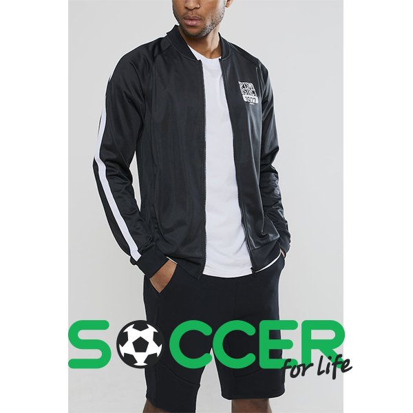Світлі смуги на рукавах і логотип колекції на грудях доповнюють образ.