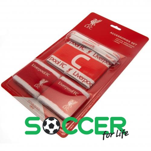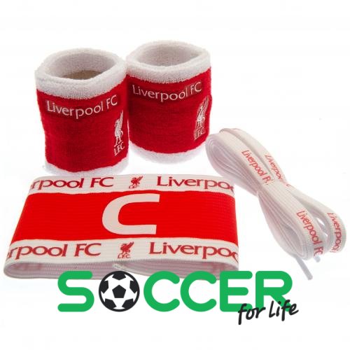 Набір аксесуарів Ліверпуль. У набір входять: 1 капітанська пов'язка: 2 напульсники: шнурки. Офіційний ліцензований продукт.