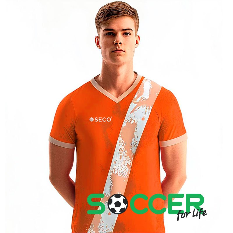 Модель SECO Giuma II має проривний ексклюзивний дизайн. Власник Giuma II - це динамічна раціональна Команда, яка зносить усіх на своєму шляху. По діагоналі розташована смуга. На цій моделі відмінно виділяється нанесення логотипів, гербів. У виробництві виробів SECO використовується обладнання нового покоління. Модель SECO Giuma II має зручну анатомічну посадку, легку приємну на дотик тканину з сітчастою структурою та високу якість обробки всіх вузлів виробу. Тканина забезпечує комфортну температуру тіла при інтенсивних навантаженнях на відкритому повітрі та у закритому приміщенні. Спеціальні сполучні нитки дозволяють зробити шов міцним та еластичним, що робить його стійким до розривів. Вироби проектуються з урахуванням антропологічних відмінностей атлетичної фігури та її розмірних ознак, що дає відмінну посадку виробу по фігурі, комфорт в експлуатації. Візерунок нанесений методом сублімації з екологічних матеріалів з гарантією 5 років. Технологія SECO дозволяє переносити колір на тканину соковитими та яскравими кольорами. Воріт V-подібний. Модель – унісекс. Склад – 100% вентильований поліестер. SECO Giuma II зроблена в Європі. Продукт сертифікований. Футбольна форма SECO – це Твій шлях до перемоги!