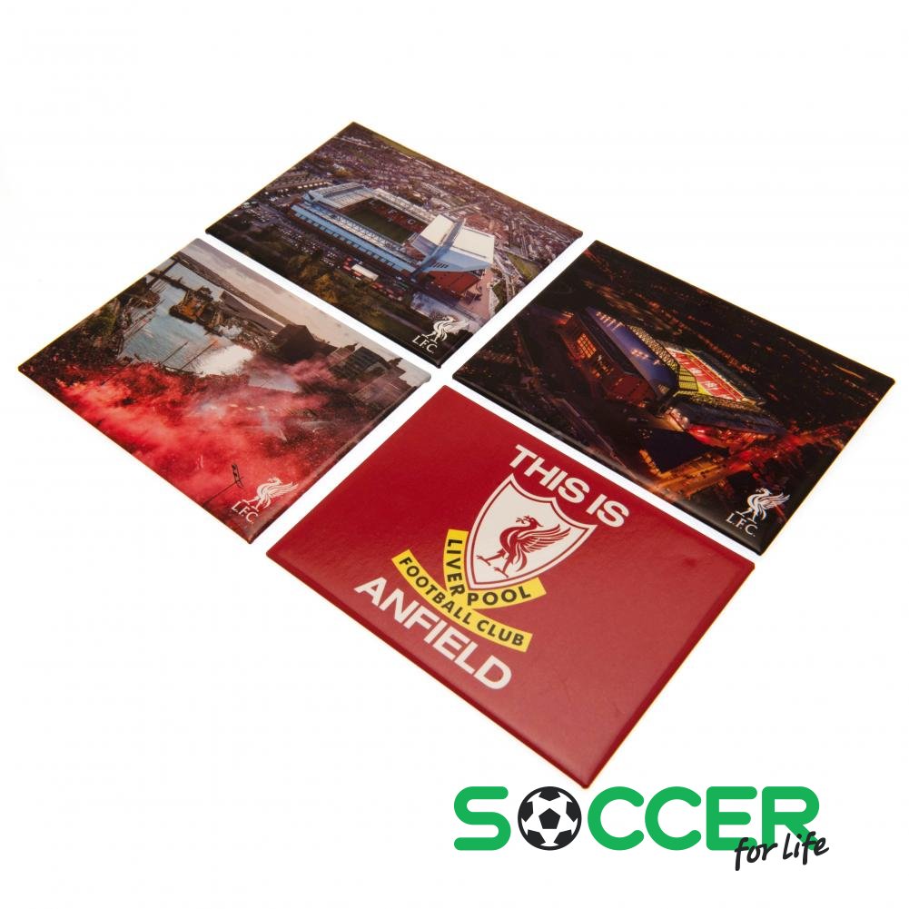 ОписНабір із 4 магнітів на холодильник із футбольним клубом «Ліверпуль»
