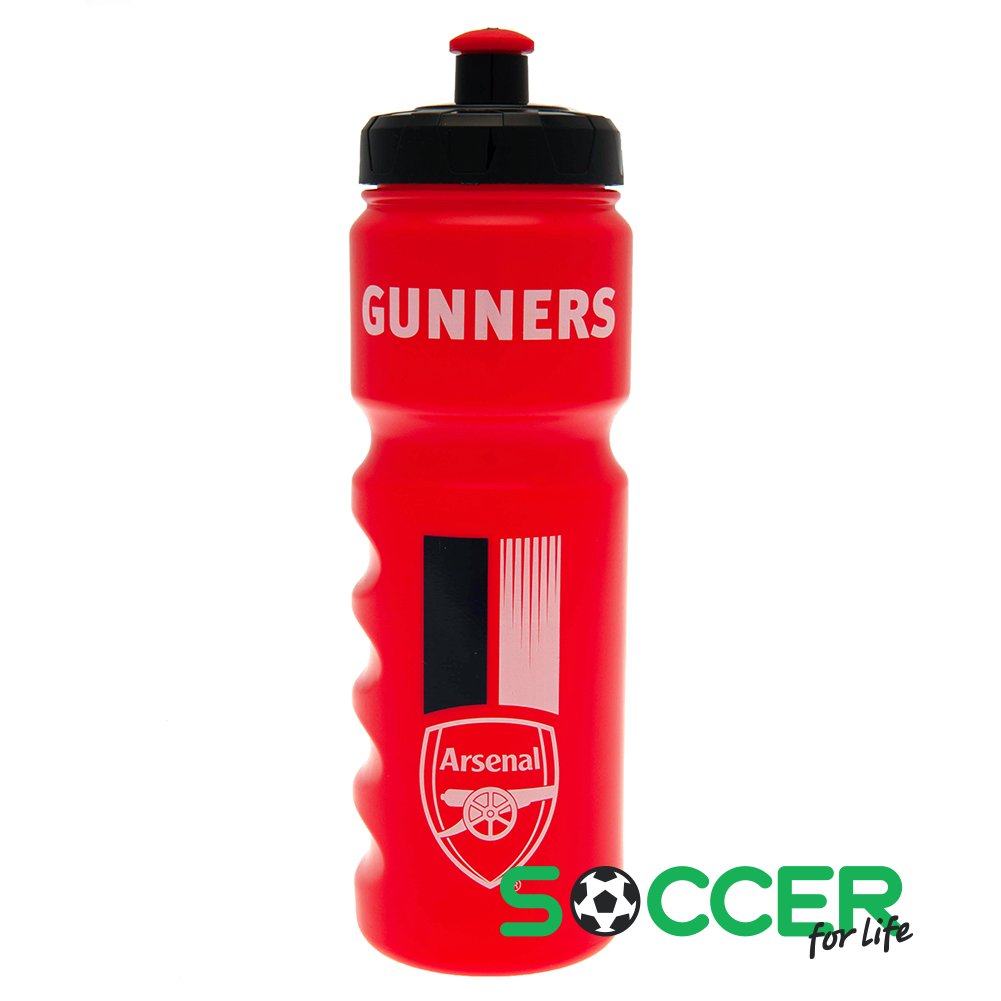 Зручна легка пляшка для напоїв з червоними смугами та білим гербом "Арсенал".